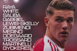 阿森纳vs奥林匹亚科斯首发:1-拉亚、2-萨利巴4-本-怀特、6-加布里埃尔、49-斯凯利8-厄德高、36-苏维门迪、23-梅里诺11-马丁内利、19-特罗萨德、14-约克雷斯