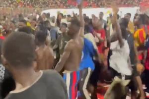 赛后,加纳球迷疯狂庆祝,高呼世界杯举办地USA,球迷们还连续整齐地模仿C罗的庆祝动作。