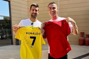 体育资讯10月21日讯 网球巨星德约科维奇近日造访C罗所拥有的里斯本网球中心,并与C罗本人交换球衫。