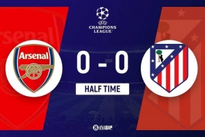上半场伤停补时1分钟,半场结束,阿森纳暂0-0马竞。